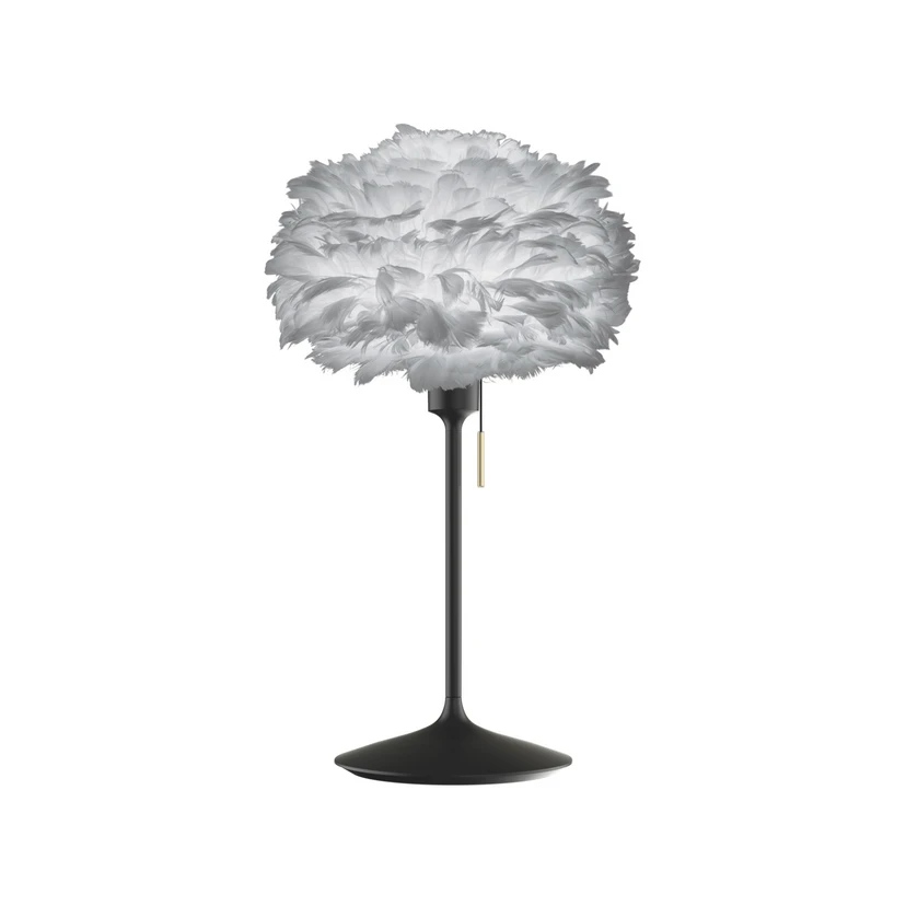 Light grey Eos mini table lamp with feather shade and black metal base A light grey shade made from real goose feathers and a slim, elegantly shaped frame made from black metal - these are the components of the Eos mini table lamp, a light that stands out for its shade material alone. Around 900 real goose feathers adorn the lampshade all around and give the light a special lightness. The black frame was created by designer Andes Klemens, who based the shape of the base on the form of a champagne flute. The EOS table lamp also offers functionality and modern technology, as there is an integrated USB port at the bottom of the base for charging a smartphone or Tablet. The pull switch at the top of the frame makes it easy to operate. The Danish co-founder of luminaire manufacturer Umage, Søren Ravn Christensen, enchants with Scandinavian style in his designs, which are inspired by natural tones and the landscape. The focus is on the modern expressiveness and sustainability of the products, resulting in unique lights that create a glamorous ambience in any room - A hair dryer is recommended for cleaning the Eos mini table lamp - No feathers from live animals are used
