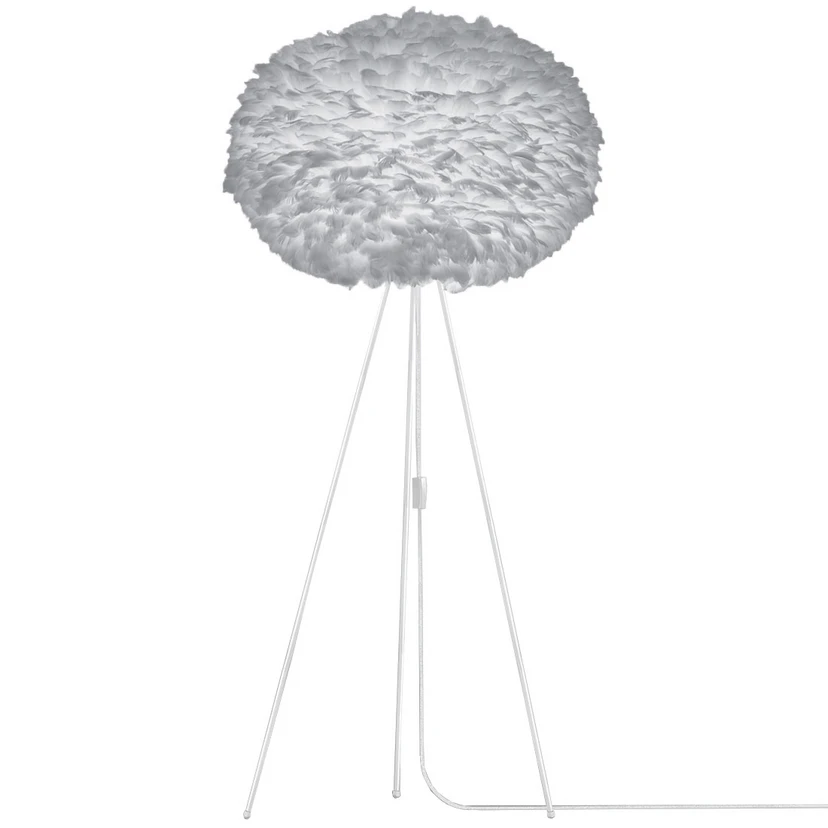 Tripod floor lamp Eos X-large with a light grey feather lampshade