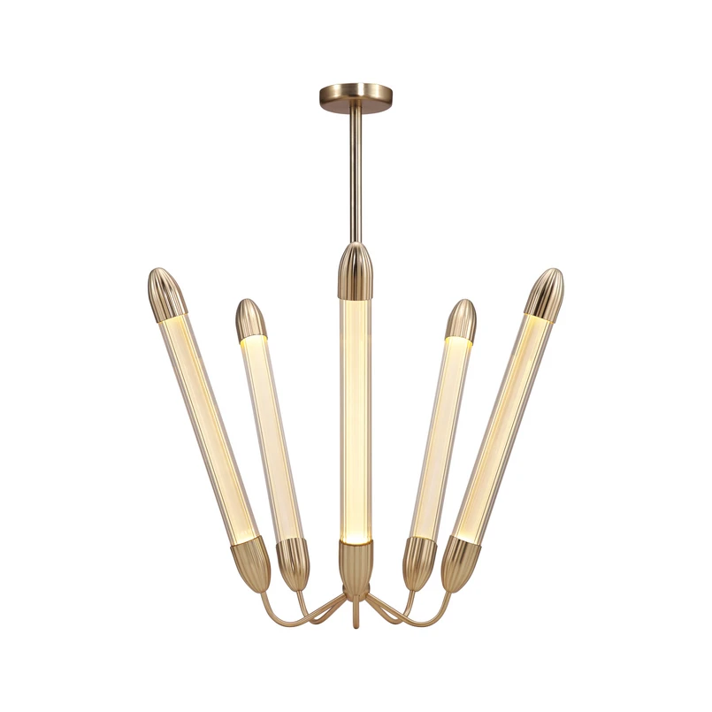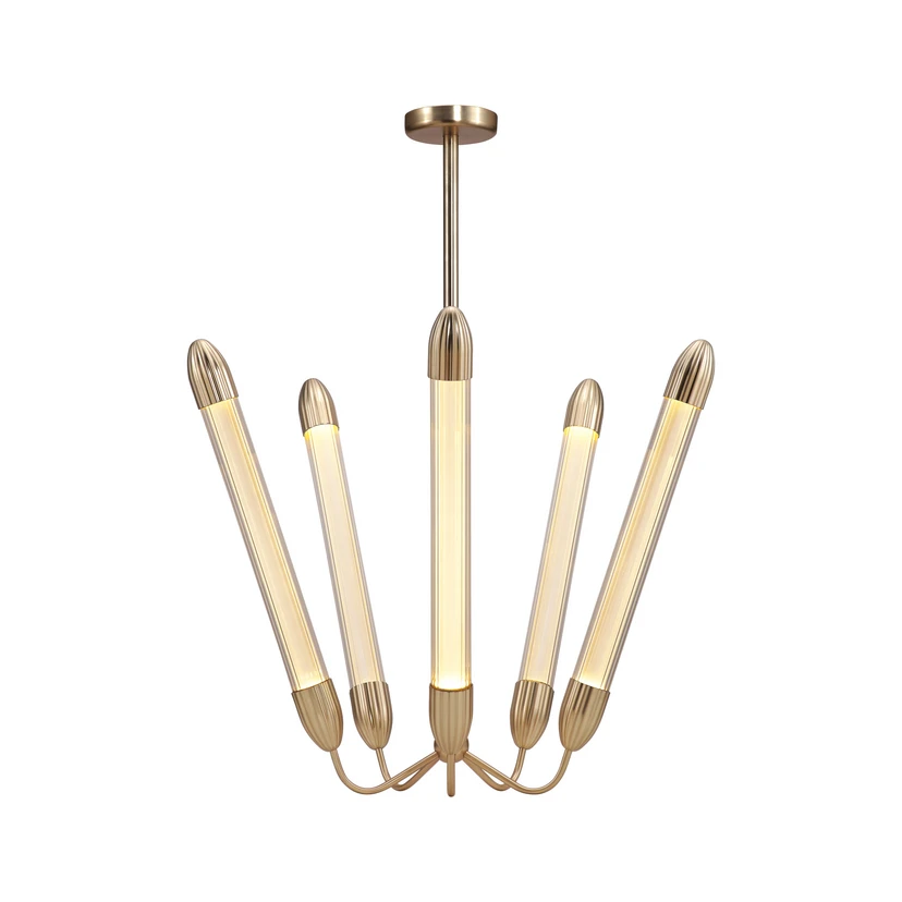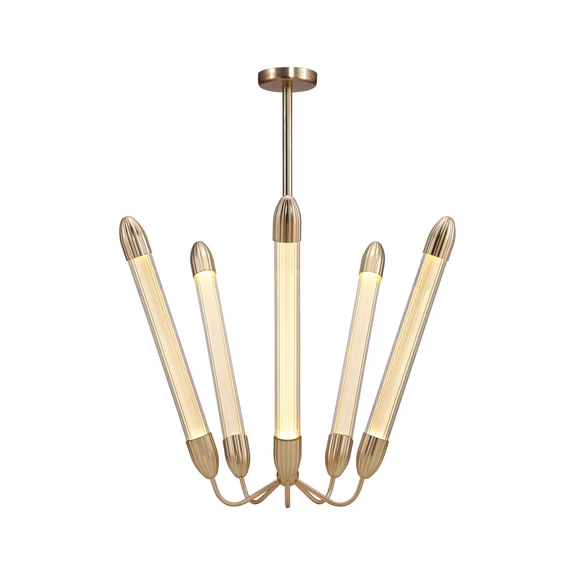 Lemon Squeeze pendant light with GU10 sockets The 5-bulb Lemon Squeeze pendant light evokes nostalgic feelings and radiates contemporary elegance. It is a harmonious combination of steel and extruded glass with distinctive waves that catch the light and a diffuser tube inside each glass bulb that provides soft and even lighting. The Lemon Squeeze light series is a design by Søren Ravn Christensen, designer and co-founder of the Danish lighting company UMAGE. The Lemon Squeeze pendant light creates a calm and harmonious atmosphere in the room and lends any room a subtle sophistication. With its graceful aesthetics and beautiful lighting effect, it blends into any room and brings harmonious lighting, warmth and sophistication to any environment. The light is equipped with GU10 sockets in the five tubular glasses and can be fitted with LED bulbs up to 15 W.