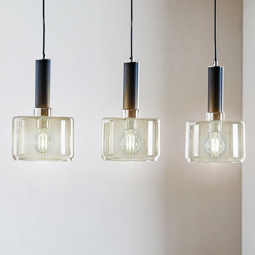 The Viva pendant light combines modern design with high-quality materials such as glass and metal to provide a stylish lighting solution for various living spaces. With its 3-bulb design and colour combination of smoky grey-transparent, black and chrome, it adds an elegant touch to the living room, kitchen or dining room. The light is not only a visual highlight, but also an expression of European craftsmanship.