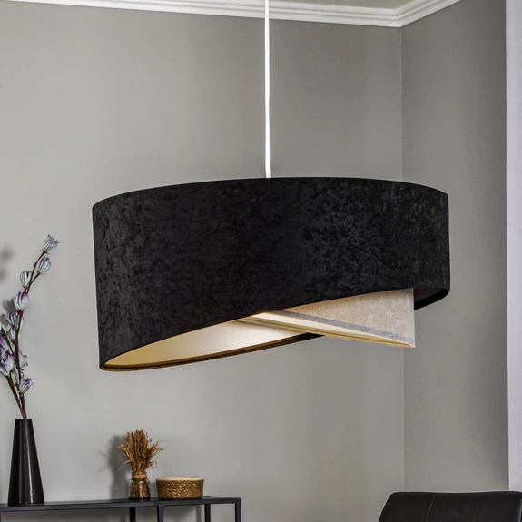 The Vivien pendant lamp impresses with its modern aesthetic and harmonious combination of black, grey and silver. Made from high-quality velour and plastic, it fits seamlessly into various living spaces such as living rooms, bedrooms and dining rooms. Its handmade finish gives every room an individual touch and makes it a real eye-catcher.