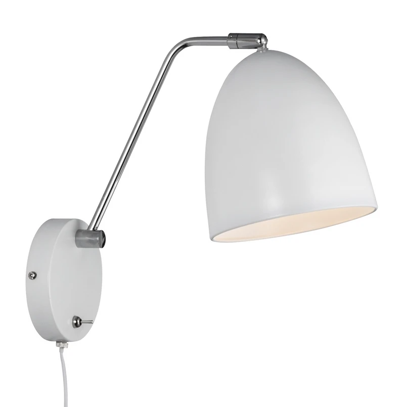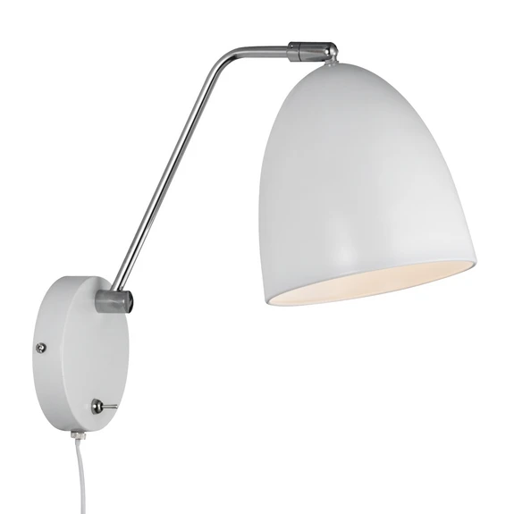Alexander wall lamp with cable and plug The Alexander wall lamp combines silk matt lacquered metal and a chrome-plated, delicate arm that connects the wall mount and lampshade to create a delicate light. Equipped with a cable with plug, it is a versatile light source that only requires a socket. The Alexander wall light can therefore be used both in the living room and in the bedroom, where it replaces the bedside table lamp. A toggle switch for switching directly on the light is built into the round wall mount.