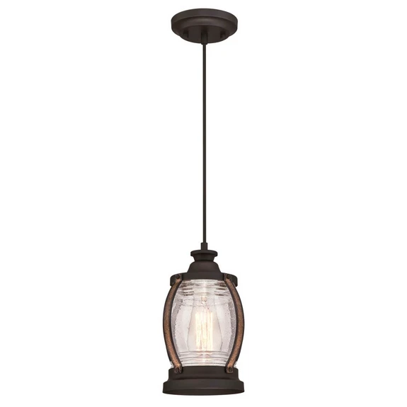 Canyon lantern-shaped pendant light with transparent antique glass The housing of the rustic Canyon pendant light is made of metal with an oiled Bronz finish and barnwood-look Akents. The lampshade made of finely textured, clear antique glass enhances its antique look. It also accentuates the bulb, so that tinted bulbs and bulbs with visible filaments can also be showcased (available separately under accessories). The lantern shape of the Canyon pendant light also makes it a real design element. This allows it to be used in a variety of styles, whether antique, vintage or country house style. In addition, the suspension system can be adjusted during installation in order to position it precisely where it is needed. As a small work of art, Canyon therefore cuts a fine figure above both the dining table and the bar and is also suitable for use in Hotels or as harmonious shop lighting in many areas - Retrofit E27 socket