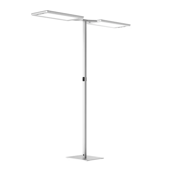 Yara.double dimmable LED office floor lamp with LTX multisensor and cool white light colour The Yara LED floor lamp is made of aluminium and steel and has a satin-finish plastic cover. Its angular, flat base ensures easy integration, even under and between office desks. The slim, minimalist form blends visually into any modern space. Die two light sources can be controlled and adjusted independently of each other. There are two control panels on the tube bulb, which can be positioned flexibly thanks to magnetic attachment. The light is emitted with excellent glare control and asymmetrical, direct as task lighting and mostly indirect as effective ambient lighting. The LTX multi-sensor constantly measures temperature, noise level and air quality. The presence and daylight sensor also detects when a person is at the workplace. The combination of data enables an efficient and comfortable lighting solution for every office as well as optimising the quality of occupancy and workload. Thanks to the TALK Bluetooth module, the lights can communicate with each other and be divided into groups or areas, for example. Using the Light Admin App, entire lighting concepts can be monitored, adjusted and controlled via smartphone, while each individual light can also be controlled by the user at the workstation via the Light User App - UGR value <= 10 - Ballast: electronic ballast (DALI) - Rectangular base - Asymmetrical emission - Flicker-free - App control; TALK Bluetooth (swarm control) - LTX multisensor - Magnetic control units