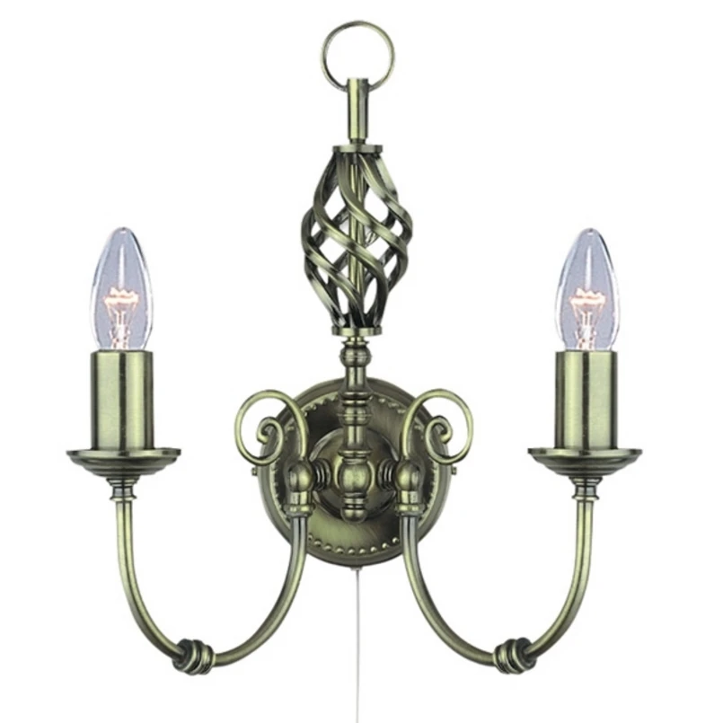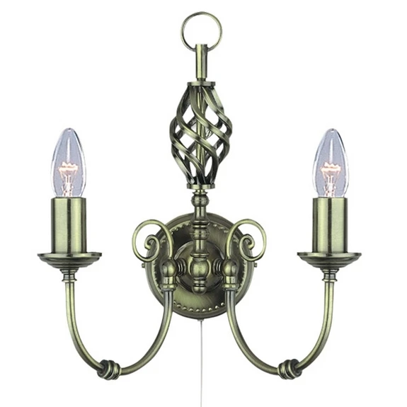 This wall light impresses with its classic and playful design that is reflected in an elegantly-frilled metal frame with an antique brass appearance. Two, beautifully-designed, curved arms emerge from it, which provide bright, additional lighting in the entrance area. Zanzibar’s elegant appearance makes it a successful eye-catcher. A pull switch is located on the frame.