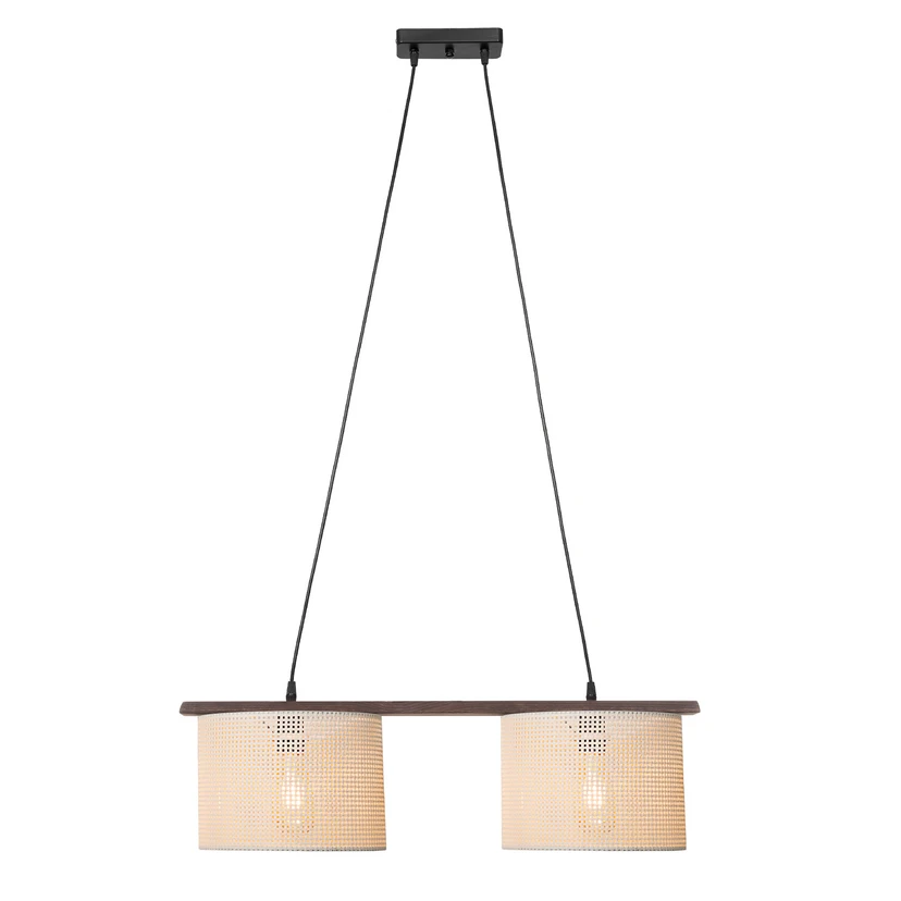 The Zigana pendant light combines stylish design with high-quality materials and brings a special atmosphere to dining and living rooms. Made from a combination of fabric, pine wood and metal, this light captivates with its unique pattern in white, dark brown and black. The 2-bulb design ensures even illumination and creates targeted accents in the room.